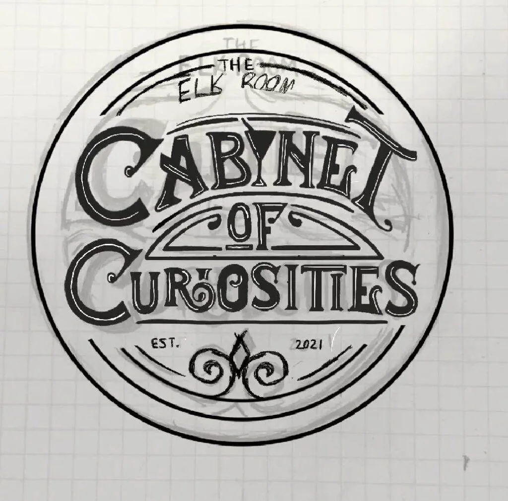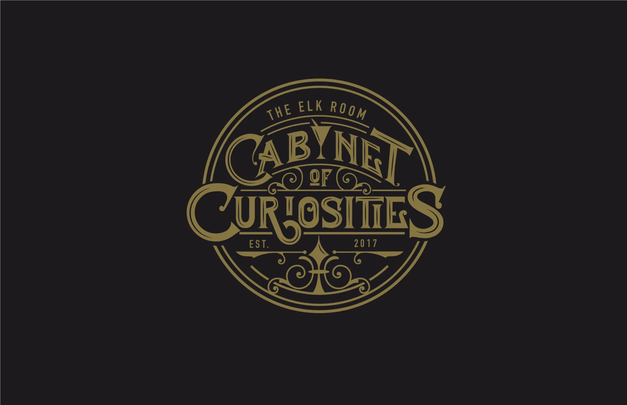 The first step was creating a mark that could be clearly identified as the Elk Room while expressing the idea of a cabinet of curiosities. For the logo, we decided to take an emblematic approach, with a hand-lettered type. This emblematic structure would contrast nicely with the idea of a structured cabinet-like grid. The mark itself is composed of a series of swashes interacting with the type. Within the type is a subtle nod to the concept of a speakeasy, a martini glass masquerading as an “I”.